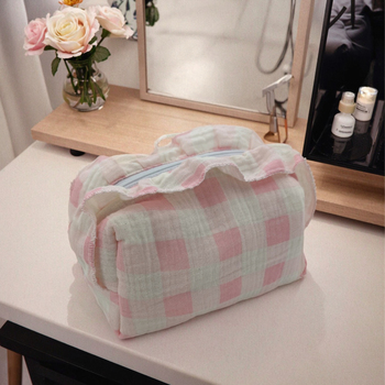 Large Capacity Portable Travel Floral Fabric Cosmetic Pouch Simple Sundries Makeup Storage with Zipper Closure Fashion Style Bag